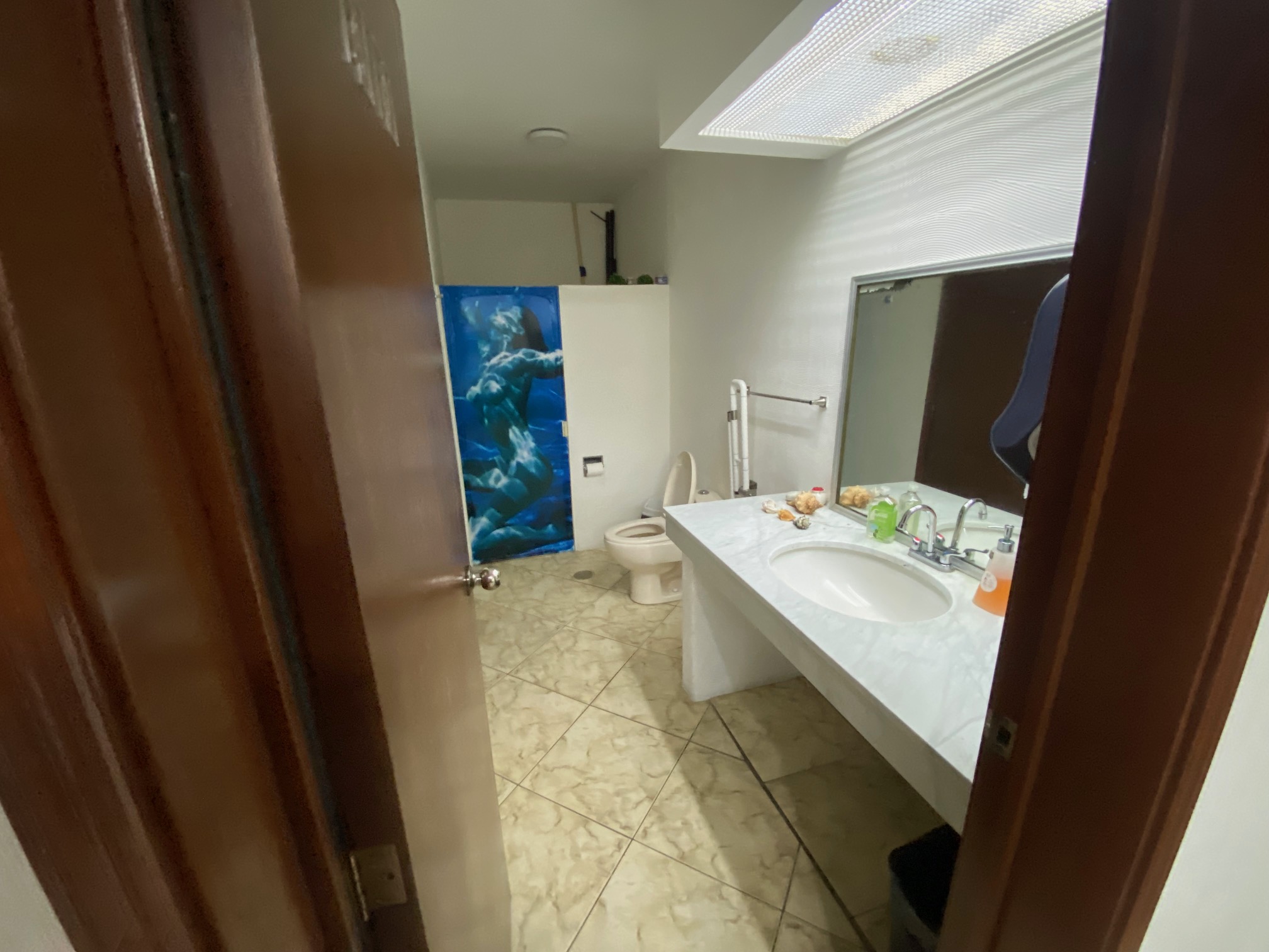Puerta en planta baja y escalera independiente, recibidor con protecciones de herrería, baño completo, sala comedor, cocina, salón de yoga y diferentes usos de ejercicios, salón de baile, baño, terraza, consultorio grande con baño, closet, cuarto de masajes, en azotea bodega y medio baño.