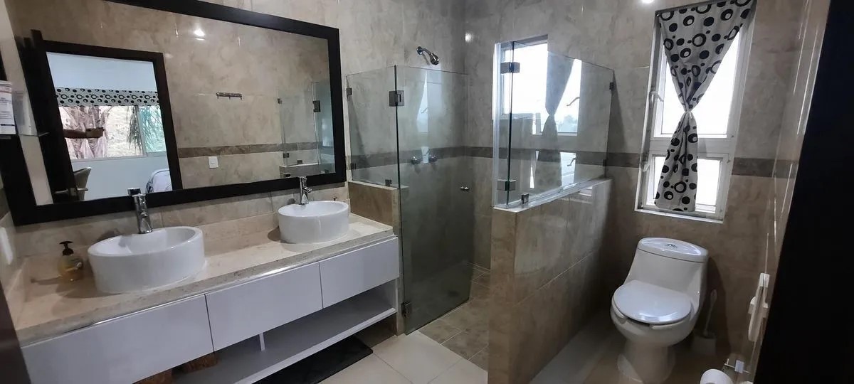 Ventaneria aluminio, pisos porcelanato, cerámica, carpintería caoba, cristal templado en baños