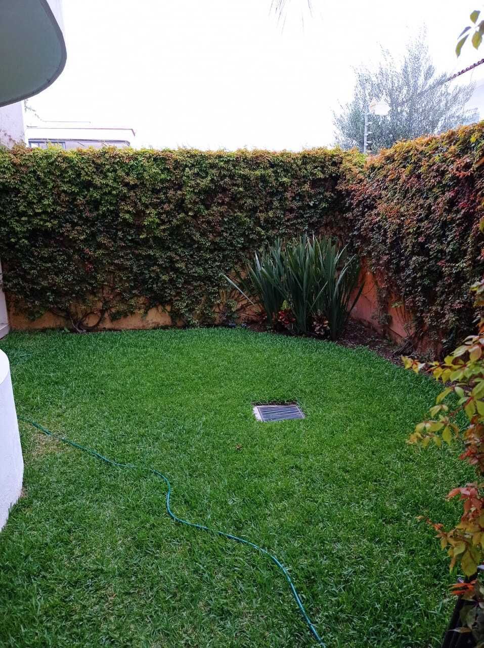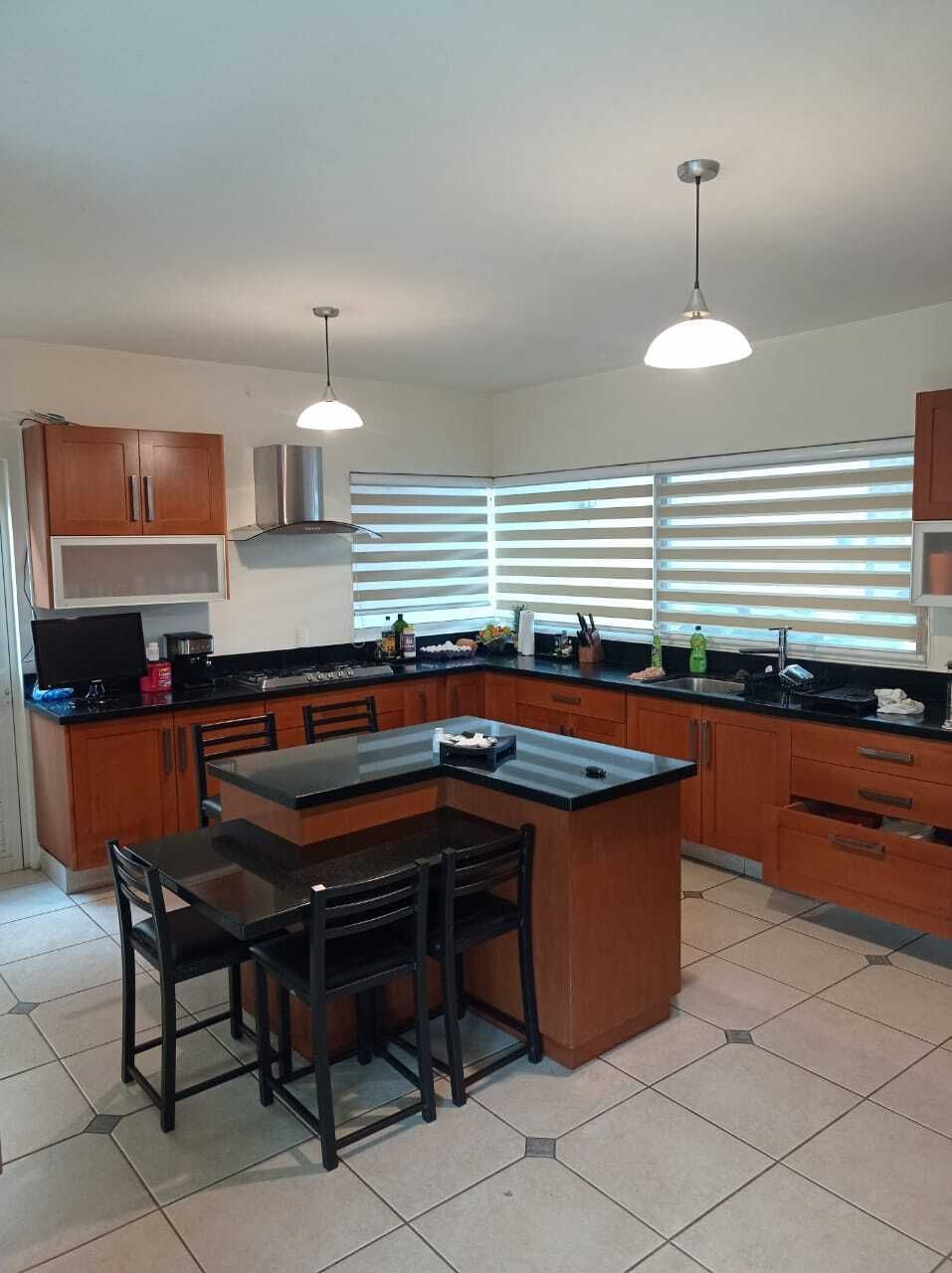 Planta Baja: Una recámara con acceso a baño completo, sala, comedor, cuarto de servicio con baño completo, amplia cocina con barra de granito, cochera semitechada para 4 autos, jardín 60m2, bodega, aire acondicionado en recámara secundaria