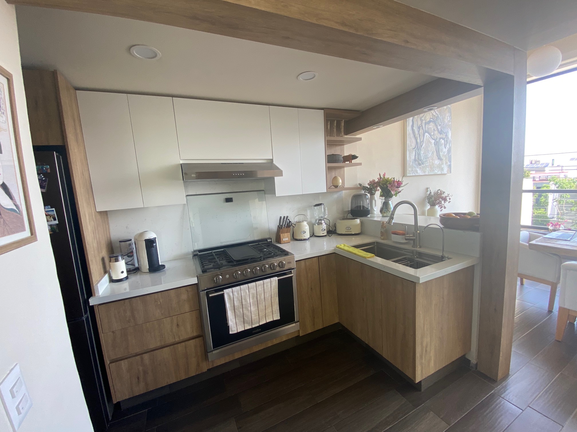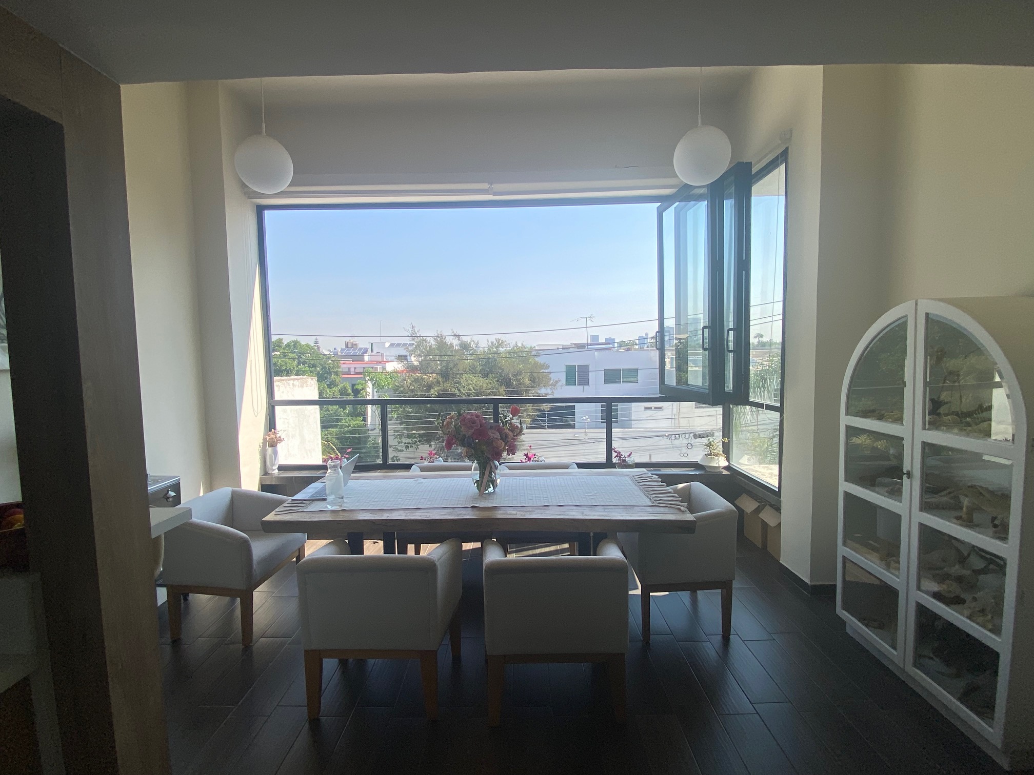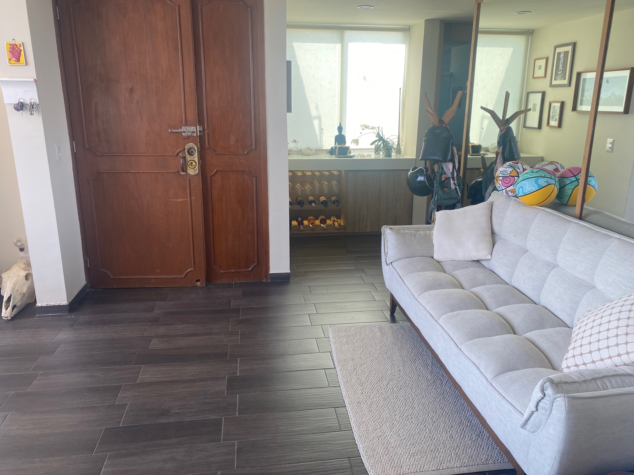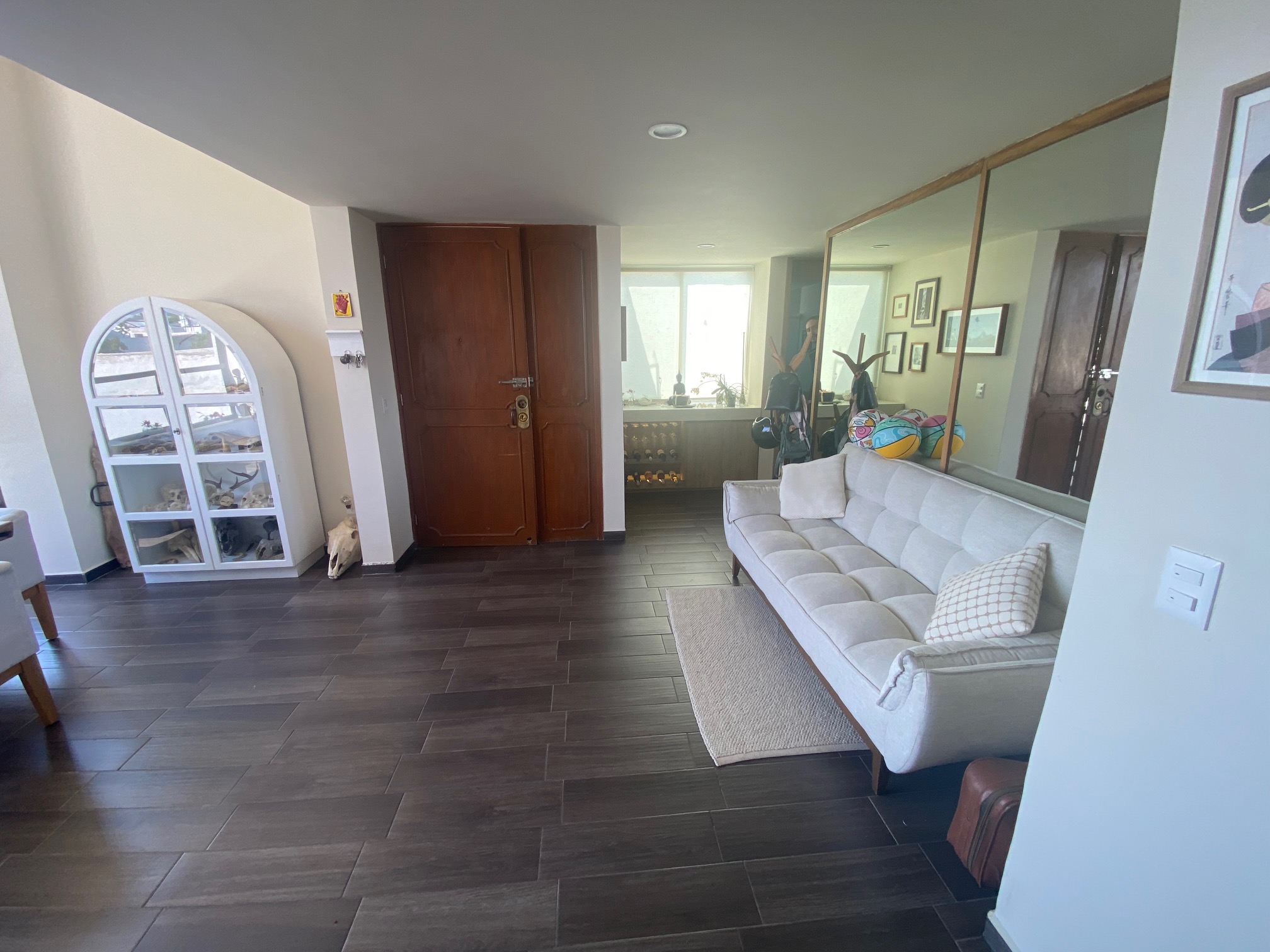 Solo 3 departamentos en la torre, un departamento por nivel, con 2 cajones de estacionamiento cada uno, recién remodelado en 2 nivel cuenta con sala recibidor, comedor con bóveda alta, amplia ventana de aluminio que abre de lado a lado dando la sensación de estar en un roof garden con vista a andares, cocina con terminados de muy buena calidad, alacena, cuarto de lavado con bodega, muebles empotrados cava, librero, 2 recamaras la principal con baño y vestidor, la recamara secundaria podría ser estudio.