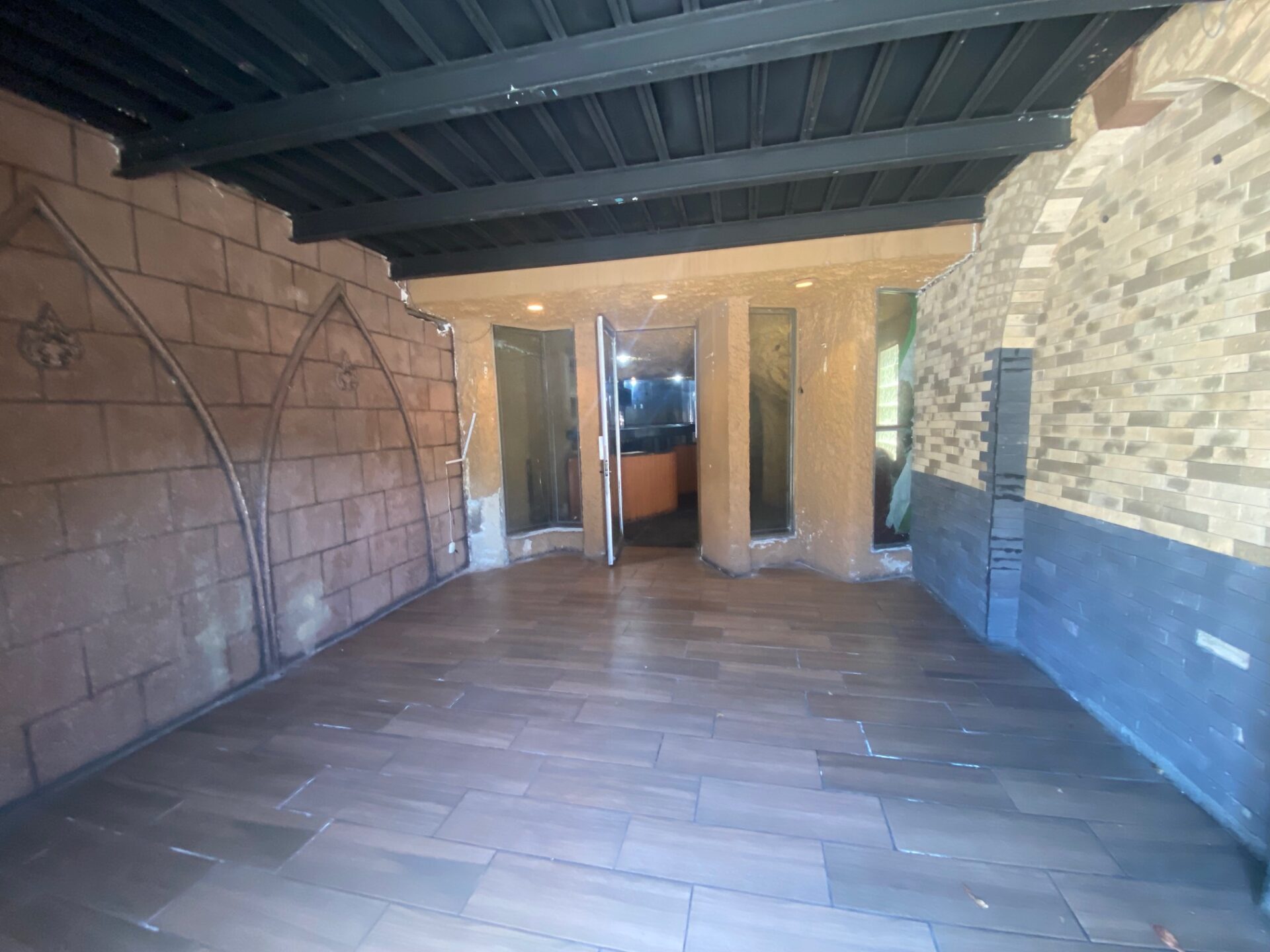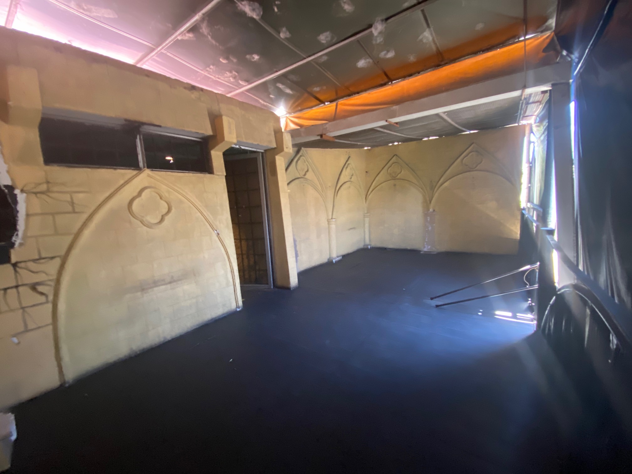Planta baja, recepción, barra, área para mesas, espacio para almacén y cocina