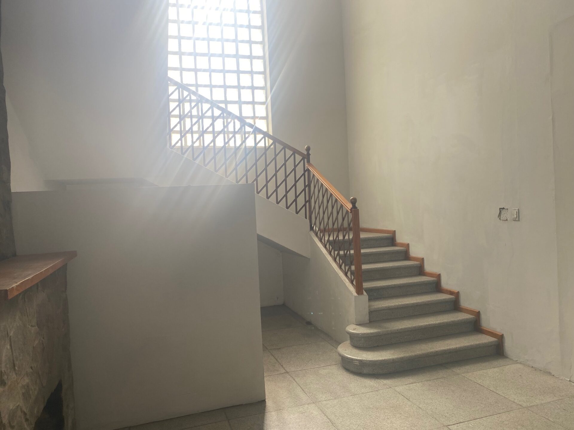 Planta Baja: Portón de herrería para cochera de 4 autos, Recepción y sala de espera, es un amplio espacio con gran cantidad de luz natural en doble altura.